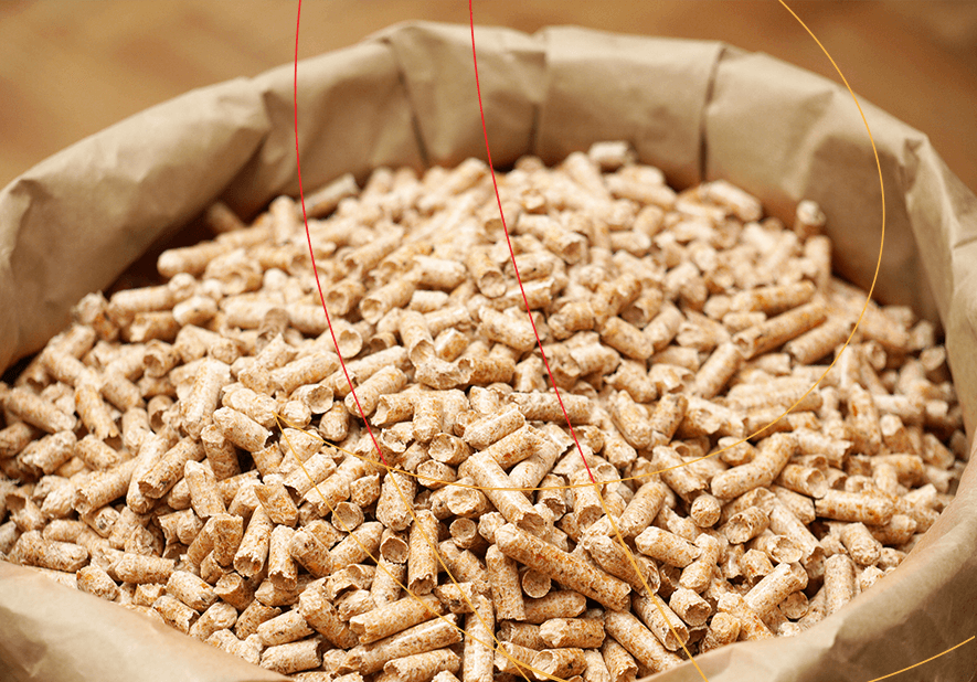 Os pellets de Pinus são produzidos a partir de resíduos florestais renováveis provenientes de madeira de Pinus.